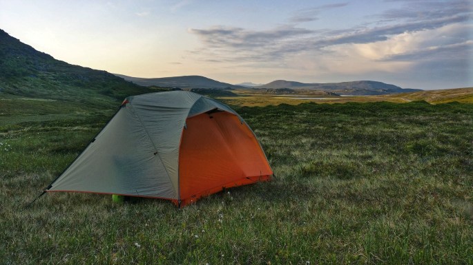 Once I’d cleared the BSTD, I began to look for a place to spend the night. I’d logged 80km, which is a respectable number for a half-day as I didn’t leave the Nordkapp ’till 1:30 in the afternoon. Norway subscribes to the Scandinavian philosophy that the land belongs to the people, and it’s written into their laws that a traveller can spend up to 2 nights, more or less wherever you decide to pitch your tent. There are a few more conditions attached to the “Right to Roam” law to guard against gypsie camps and such, but the spirit is simple: Respect the land – Sleep where you want – Don’t be a dick.