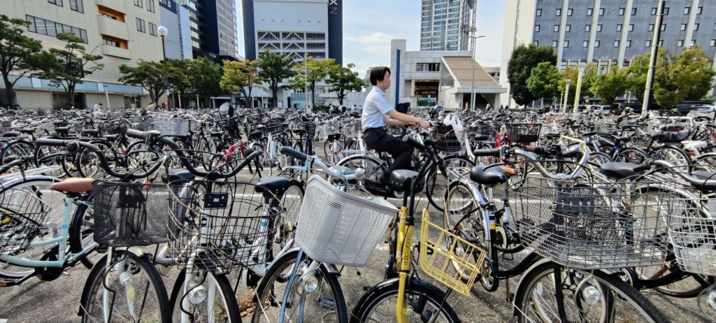 The bicycle is most definitely alive and well in Japan, and the free parking outside the train station was impressively large.